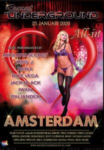 Wij zijn een thema organisatie met oa dit All-In concept, maandelijks in deze unieke club, waarbij onze strenge regels (geen mannen alleen) en tot einde event, druk met bezoekers.