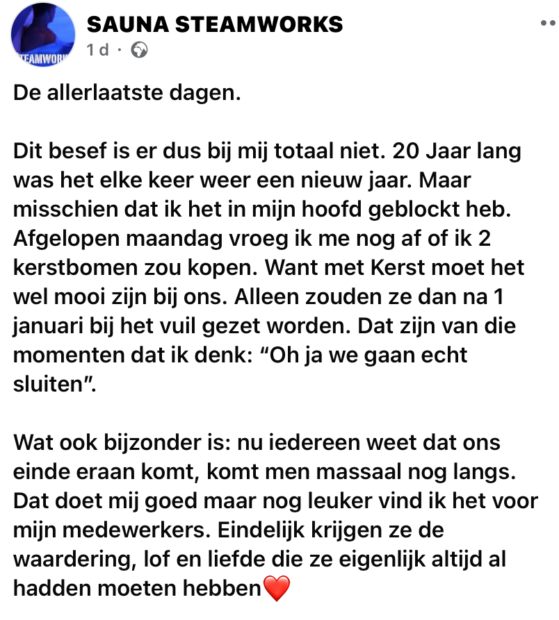 Het zwaarst valt me het afscheid van mijn medewerkers en de vele gasten die ons al die jaren trouw zijn gebleven. Afscheid nemen doet pijn, maar de wereld draait door. Samen met mijn team heb ik afgesproken dat we tot de laatste dag alles willen geven wat we kunnen.